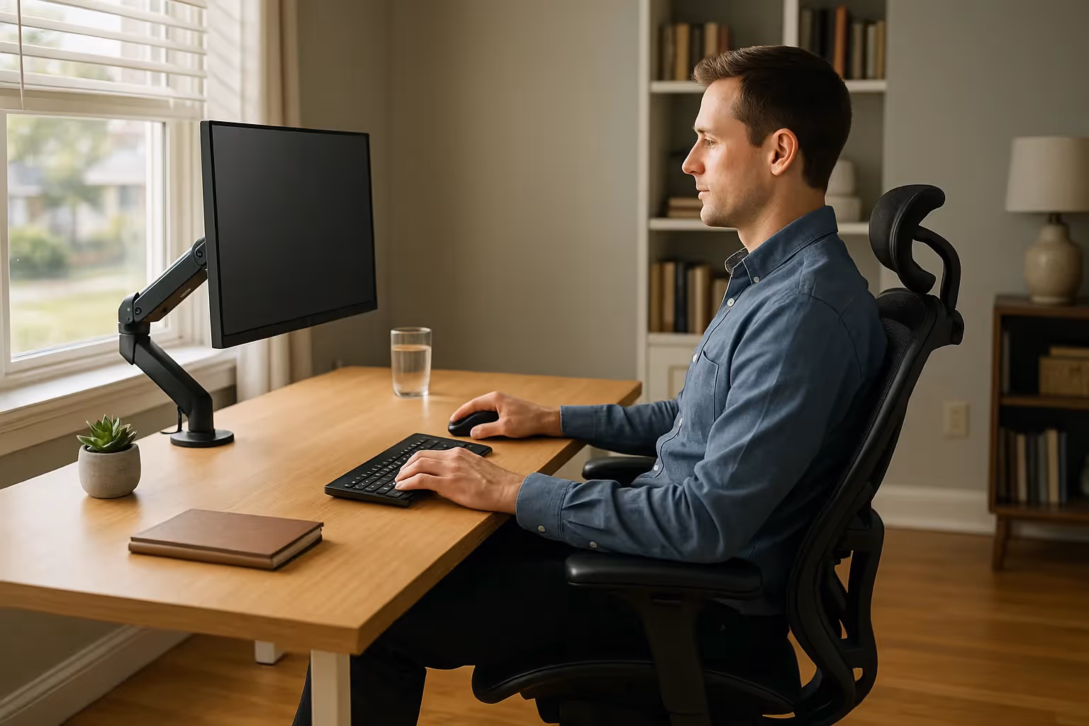 Action step: Before adjusting anything, spend one workday noticing where tension builds. Note it. That awareness guides your setup changes.
